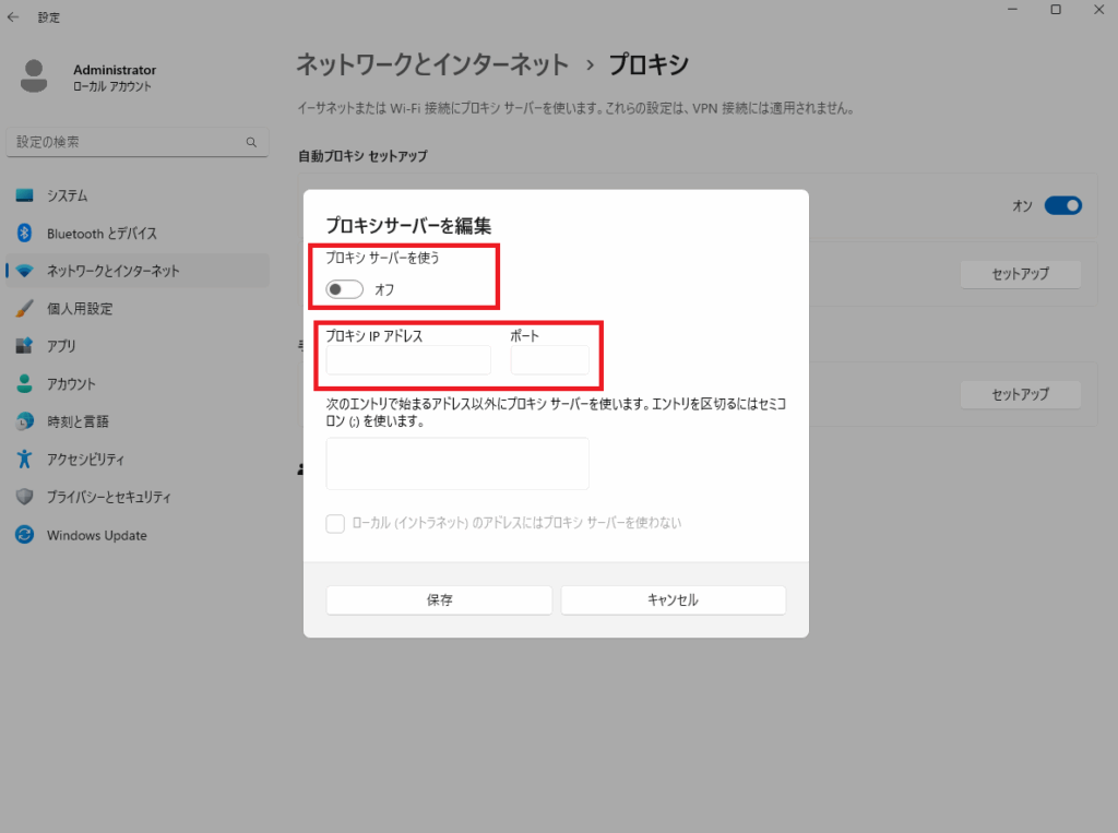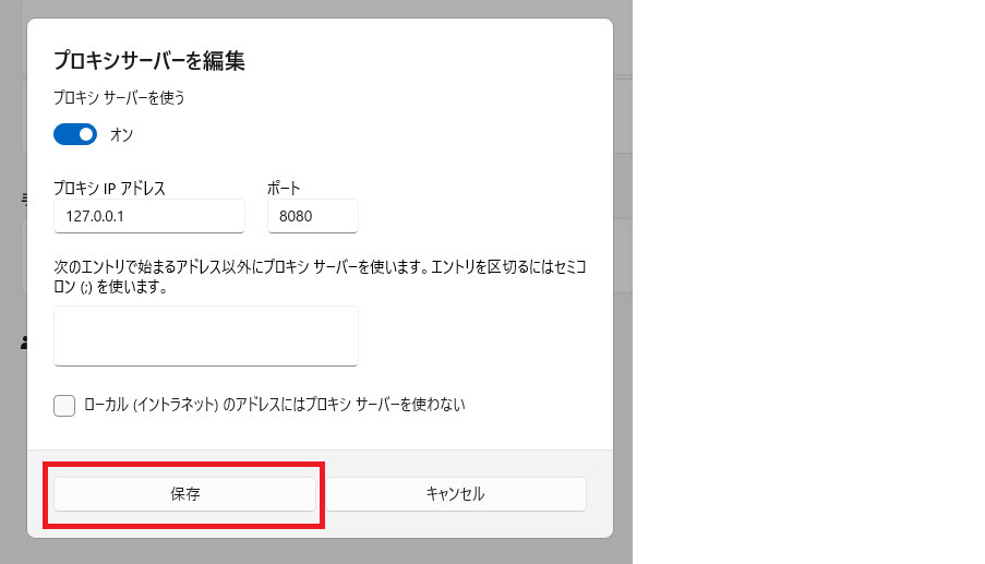 - プロキシーサーバーに接続するIPアドレスを設定する