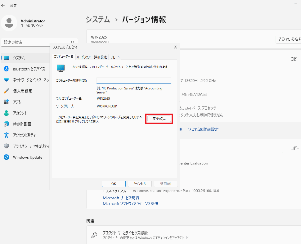 - ホスト名(Windows Serverのコンピュータ名)を変更する