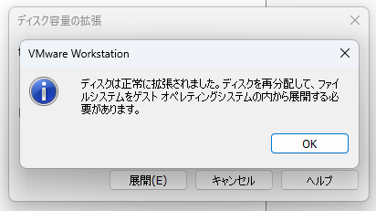 まずはVMware workstationからOSのディスクを拡張します。ESXiであればESXiの、NutanixであればNutanixの管理画面からディスクの拡張を行います。