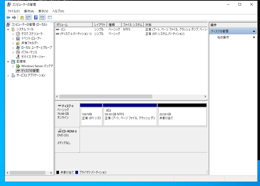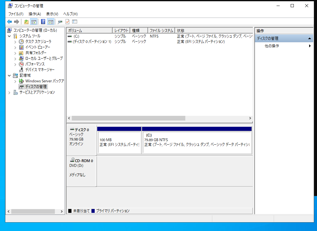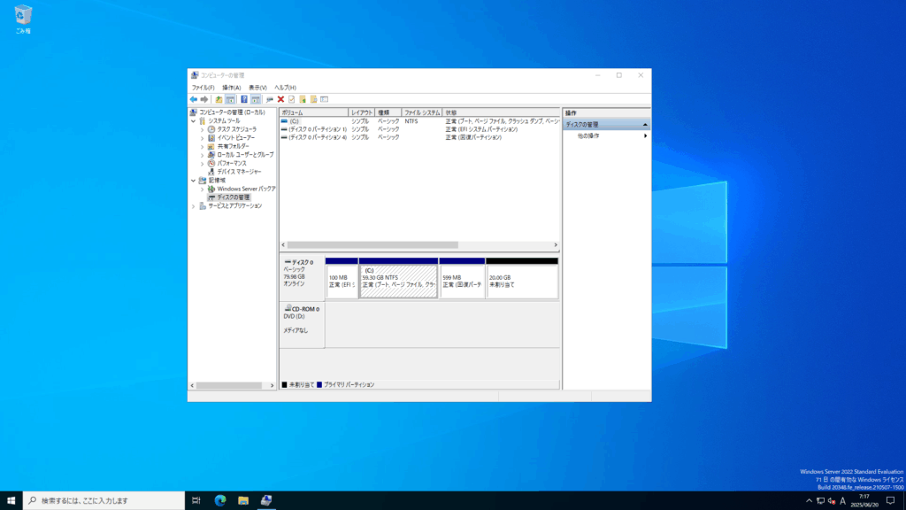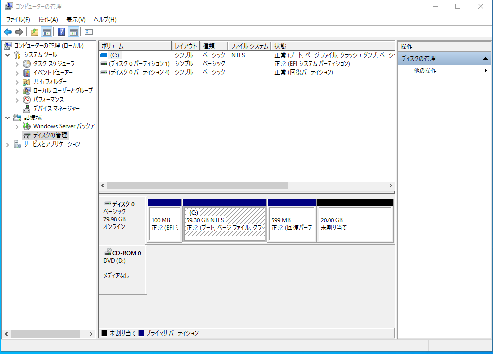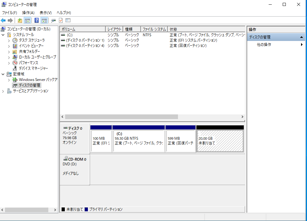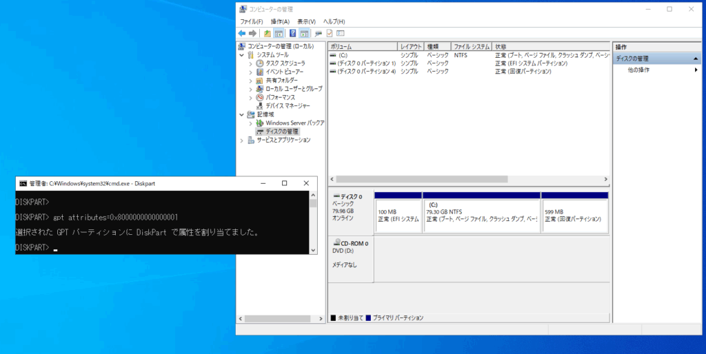 まずは回復パーティションの状態を確認します。以下はGUIでの確認です。