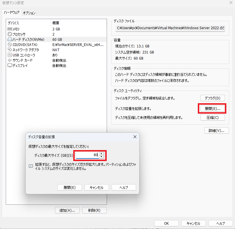 今回、60GBに設定されているものを80GBにしたので20GB増えています。