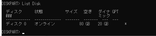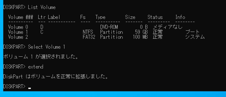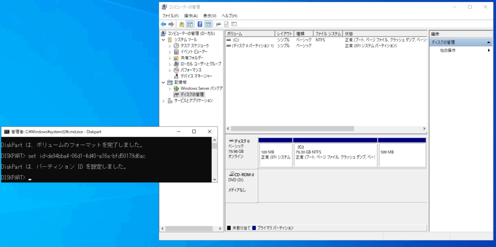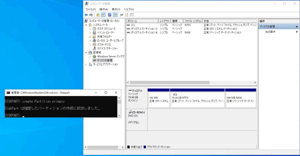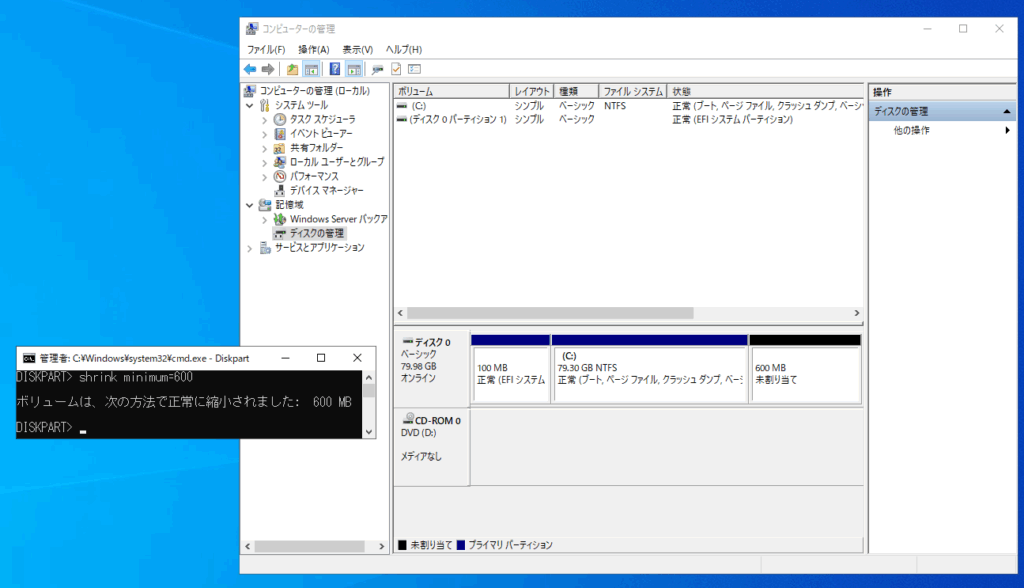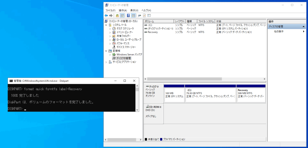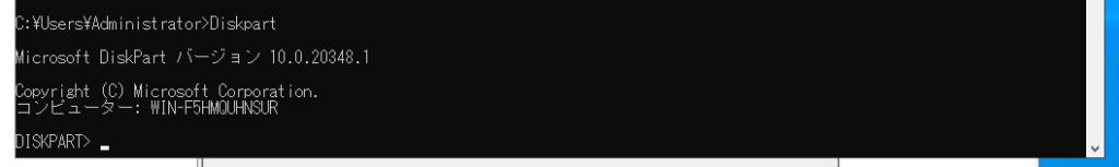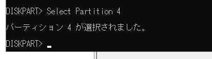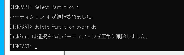 回復パーティションの削除はGUIからできないためコマンドで実行します。