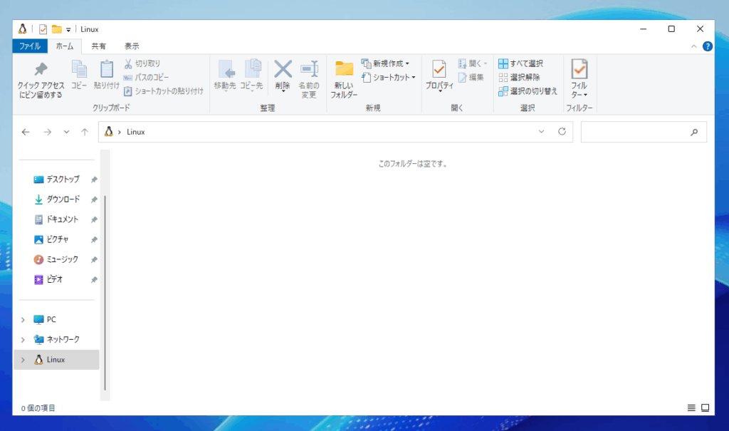 システムを起動してエクスプローラを立ち上げてみると、Linuxを選択できるようになりました。