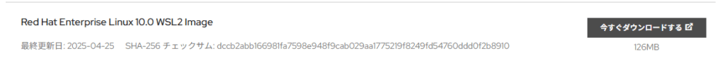 以下のRed Hat公式サイトから、WSL2用のImage(イメージ)をtar.gzファイル形式でダウンロードできます。