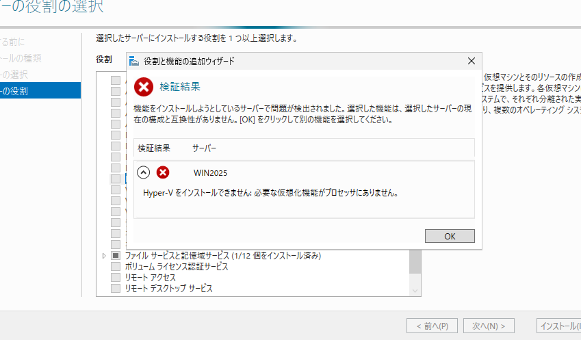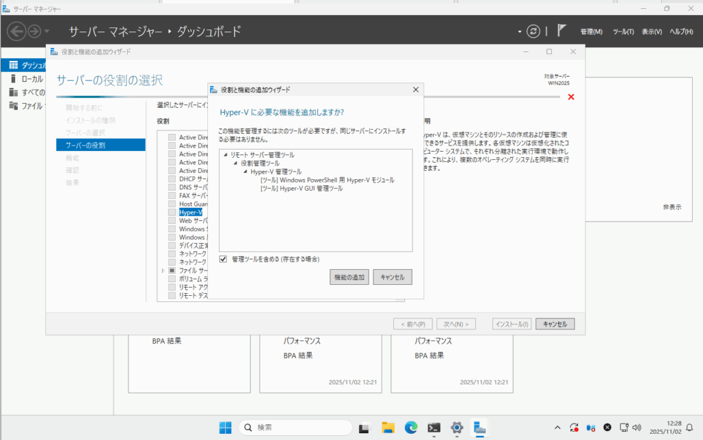 Hyper-VをWindows Server2025上で有効にしてみます。