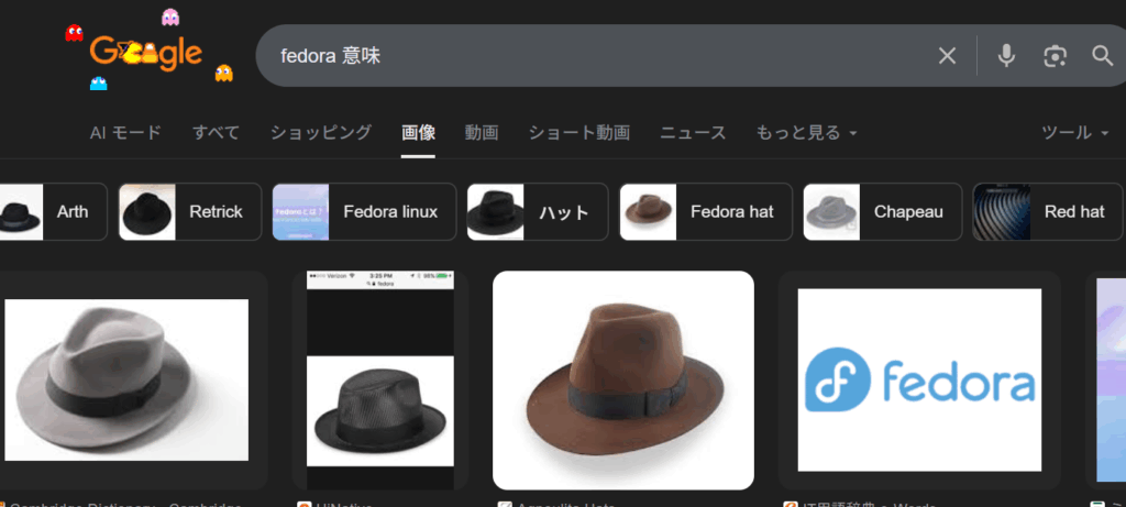 余談ですがfedoraという英単語はRed Hatが赤帽であるのに対してただの色のついていない中折れ帽子ということを意味します。
