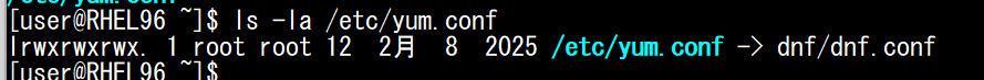 前述の通り、yumとdnfには互換性があるため、RHEL9.6の時点では、yumコマンドもdnfコマンドもどちらも同じ様に使うことができます。