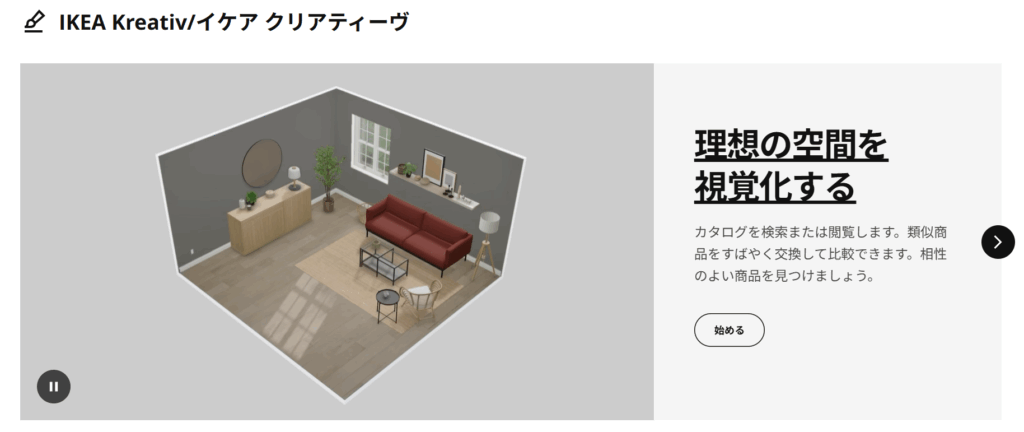 以下のIKEA公式サイトから、IKEAの家具を部屋に置いた際のデザインを確認することができます。