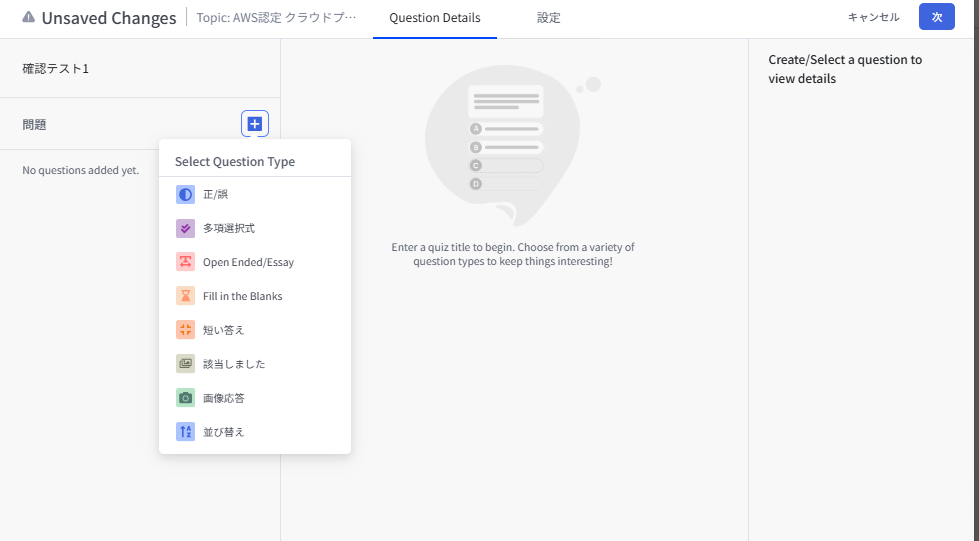 コース内にレッスンを受けて読者に受けてもらいたい小テストなどの確認テストを実装します。なお、コース内に作成できるテストの種類はプレミアムと無料版で異なります。
